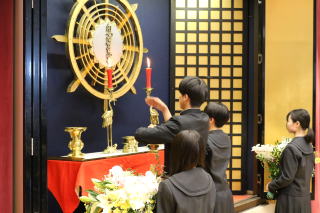 @開式の辞 A讃歌・焼香・三帰依文・念仏・恩徳讃 B入学許可者呼名