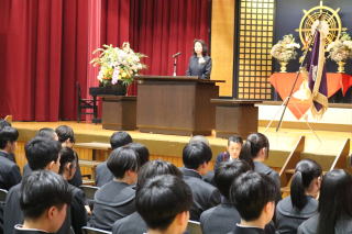 4月8日(水) 午前中に大谷アリーナにて新2・3年生の始業式が行われました。新校長先生からは、本校生徒としての心構えについてお話がありました。
